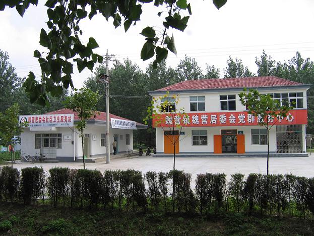 魏营居委会地处魏营镇镇区所在地,社会人口3750人,830户,辖18个居民小组,耕地面积5434亩,全居委会2007年人均收入4090元,地貌西高东低,属丘陵地区,易涝、易旱,农业生产以稻麦、玉米、杂粮种植为主,目前,80%以上农户通电话,90%以上农户有电视。 2007年底,在市、县委组织部门的大力支持下,建筑面积260平方米的党群服务中心建成并投入使用,设置了“便民服务厅、文体活动室、党群会议室、广播室”等功能室,增建了126平方米的附属房,办起了社区卫生服务站,铺设了230平方米的水泥路、700平方米的文化活动广场。魏营居委会充分发挥便民服务厅的作用,把综治、民政、计生、党员服务、中介信息、合作医疗等与老百姓紧密相关的服务送到家门口,积极为群众开展代办业务,使党群服务中心真正成为党员群众的“贴身秘书”。 如今,魏营居委会的经济社会发展已驶入快车道,必将在全镇的新农村建设中起到领头雁的作用。